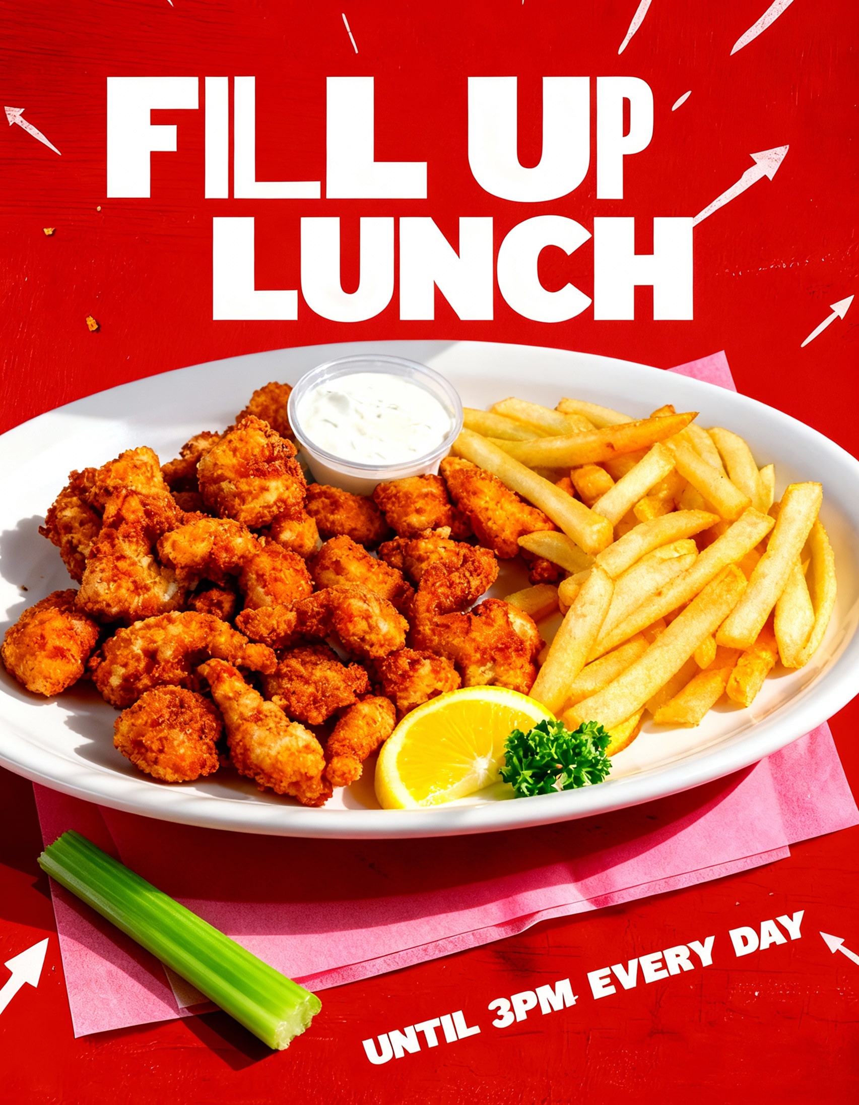 Tender boneless wings tossed in hot buffalo sauce, easy to enjoy with or without fries.