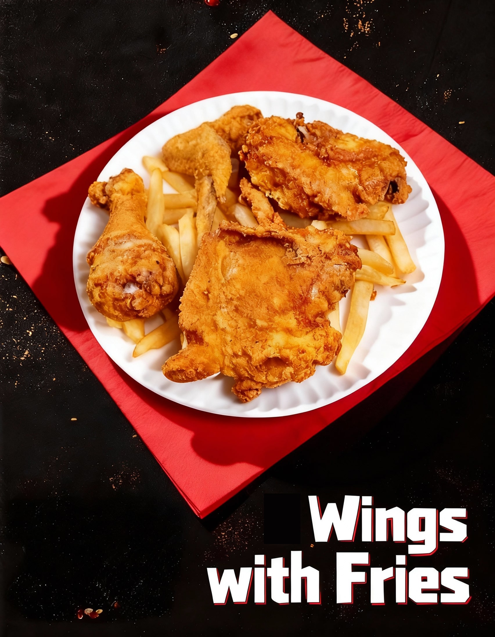 Bold and spicy buffalo wings coated in tangy heat, served alone or with fries.
